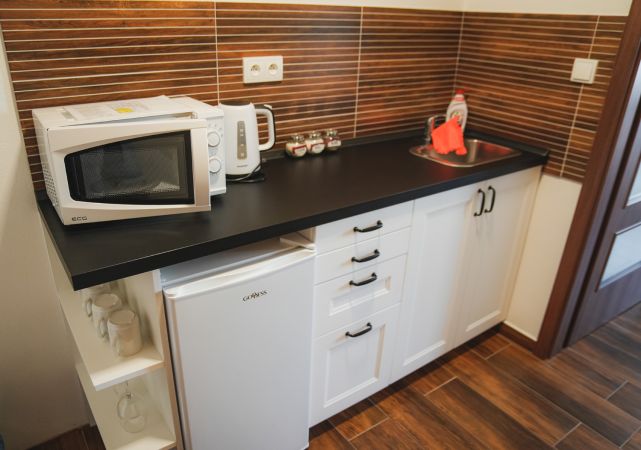 Každý apartmán má svůj kuchyňský kout se základním vybavením (rychlovarná konvice, mikrovlnná trouba a lednička). Kuchyňka není vybavena varnou deskou. Slouží primárně k přípravě snídaní, které nejsou v nabídce ubytování.