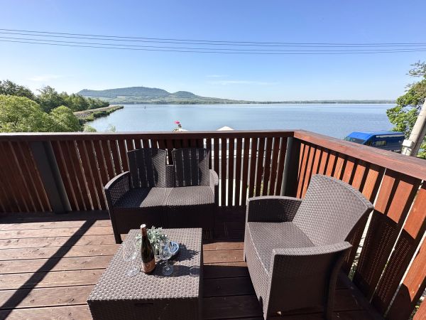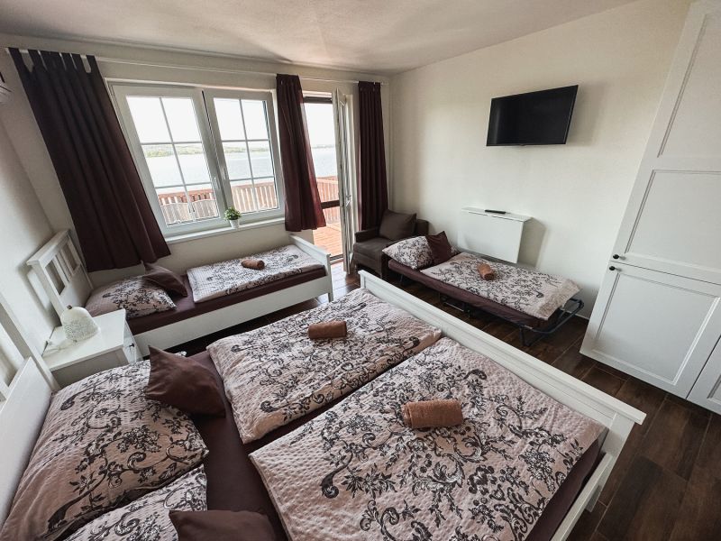 Dva třílůžkové apartmány s výhledem na jezero mají také možnost přistýlky nebo dětské postýlky, součástí je opět vlastní sociální zařízení (bidet), kuchyňský kout, televize a klimatizace.